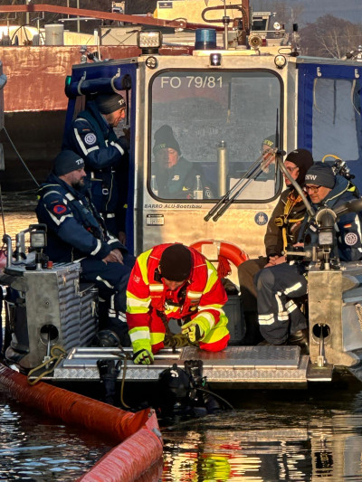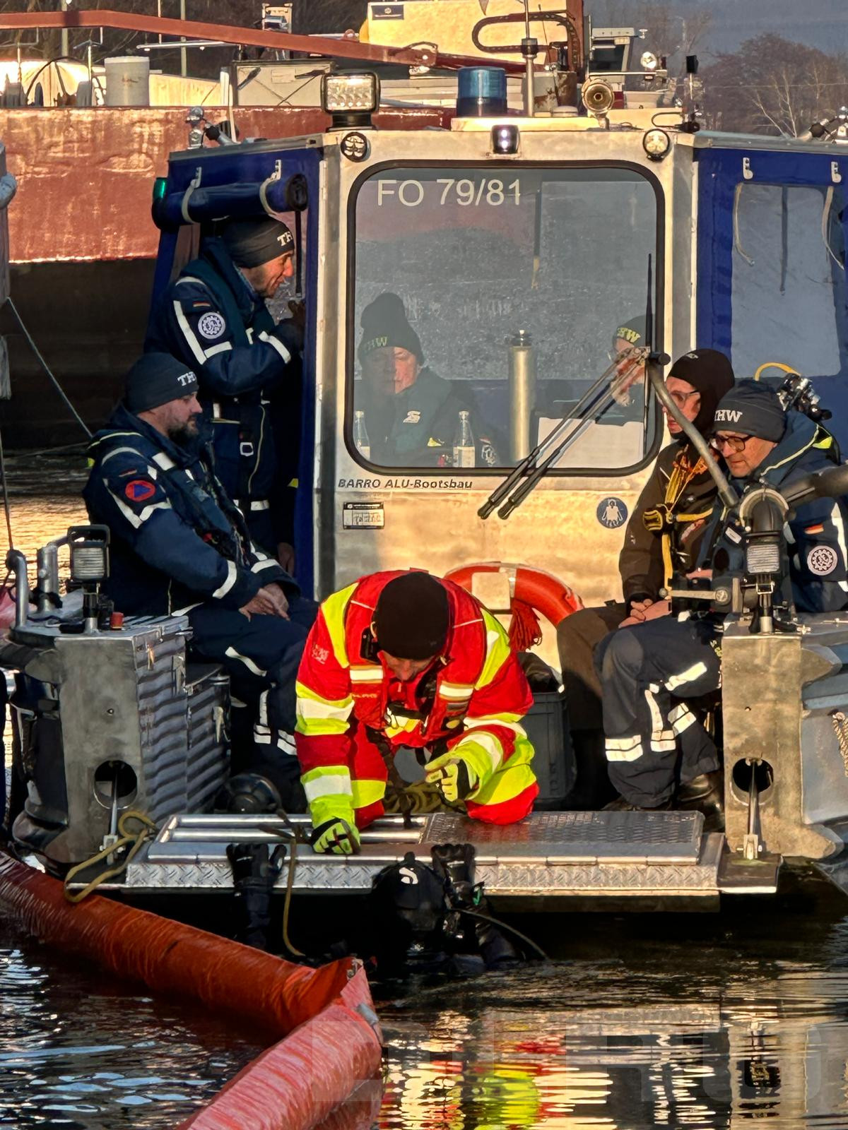 Die erste Alarmierung des Tages erfolgte um 12:52 Uhr zur Schleuse Hausen. Ein Frachtschiff war im Unterwasser manövrierunfähig und deshalb auf Grund gelaufen. Durch ein Leck drangen ca. 300l Wasser pro Minute in den Maschinenraum ein. Anfangs unterstützen die Wasserrettungskräfte beim einziehen der Ölsperre und bei der Besichtigung der Schadenslage durch Wasserschutzpolizei und Wasserschifffahrtsverwaltung. Zusätzlich wurde ein Wasserrettertrupp zur Absicherung der anderen Einsatzkräfte im Bereich der Kaimauer/Frachtschiff abgestellt. Im weiteren Verlauf sicherte ein Tauchtrupp die THW-Bergungstaucher bei der Lecksuche ab. Nach einiger Zeit wurden die THW-Bergungstaucher durch unsere Taucher bei der Lecksuche abgelöst. Gegen 17:00Uhr wurde der Einsatz an eine Spezialfirma übergeben. Für uns war der Einsatz somit beendet und der Rückbau bzw. die Reinigung des Einsatzmaterials stand an. Gegen 21:00Uhr konnten wir alle Fahrzeuge wieder auf Status 2 "Einsatzbereit Wache" setzen.