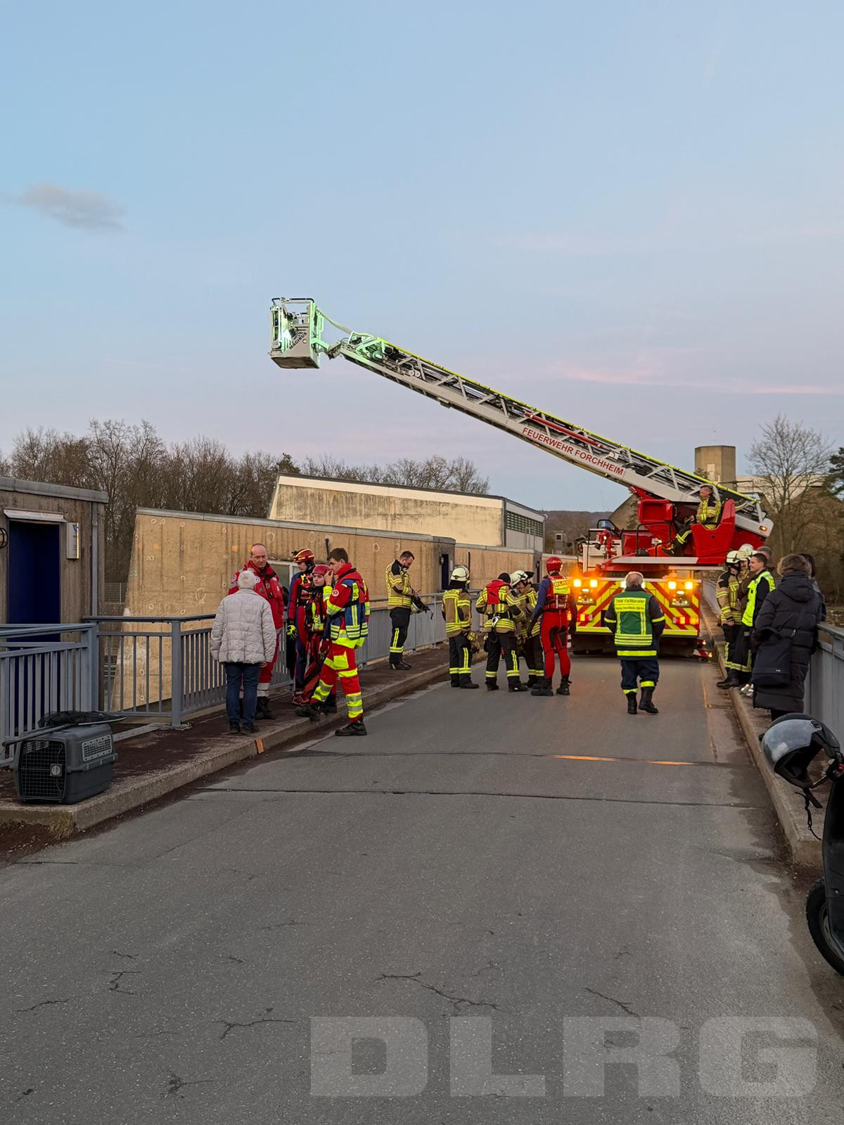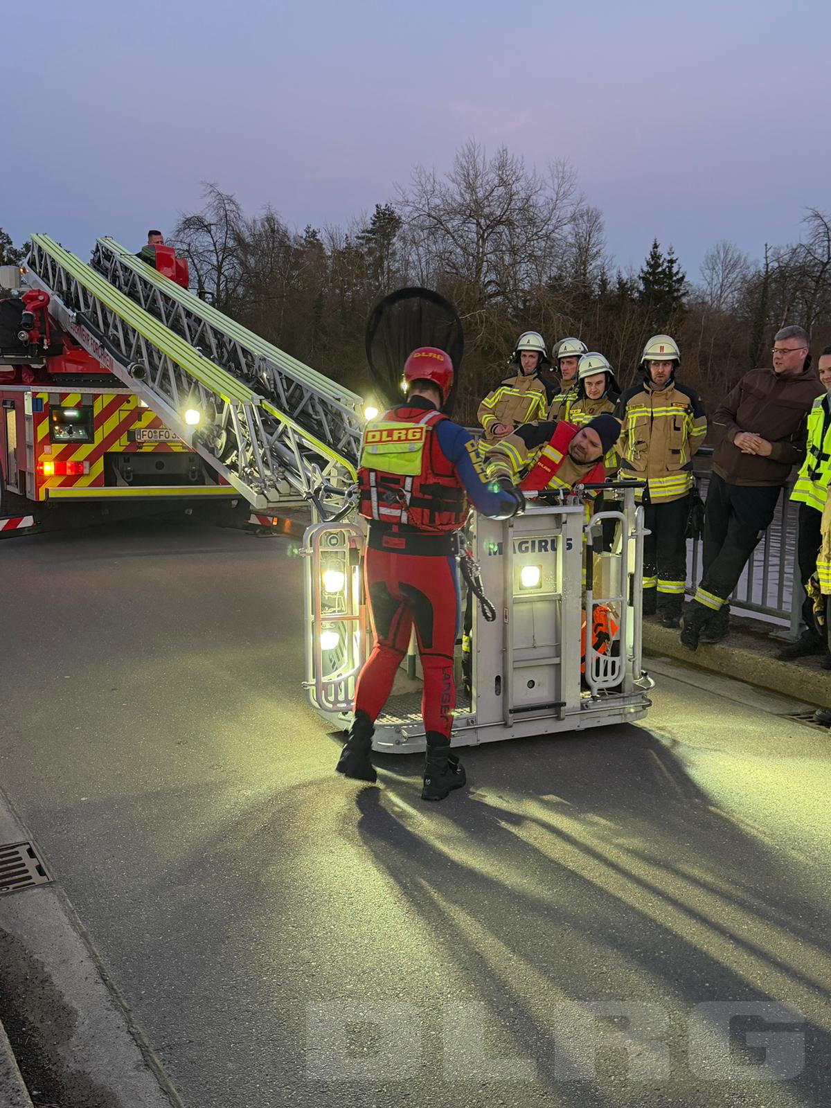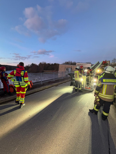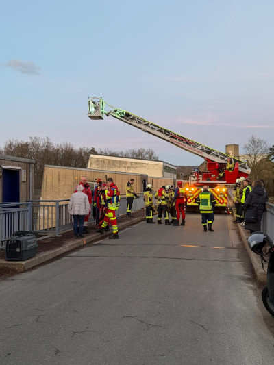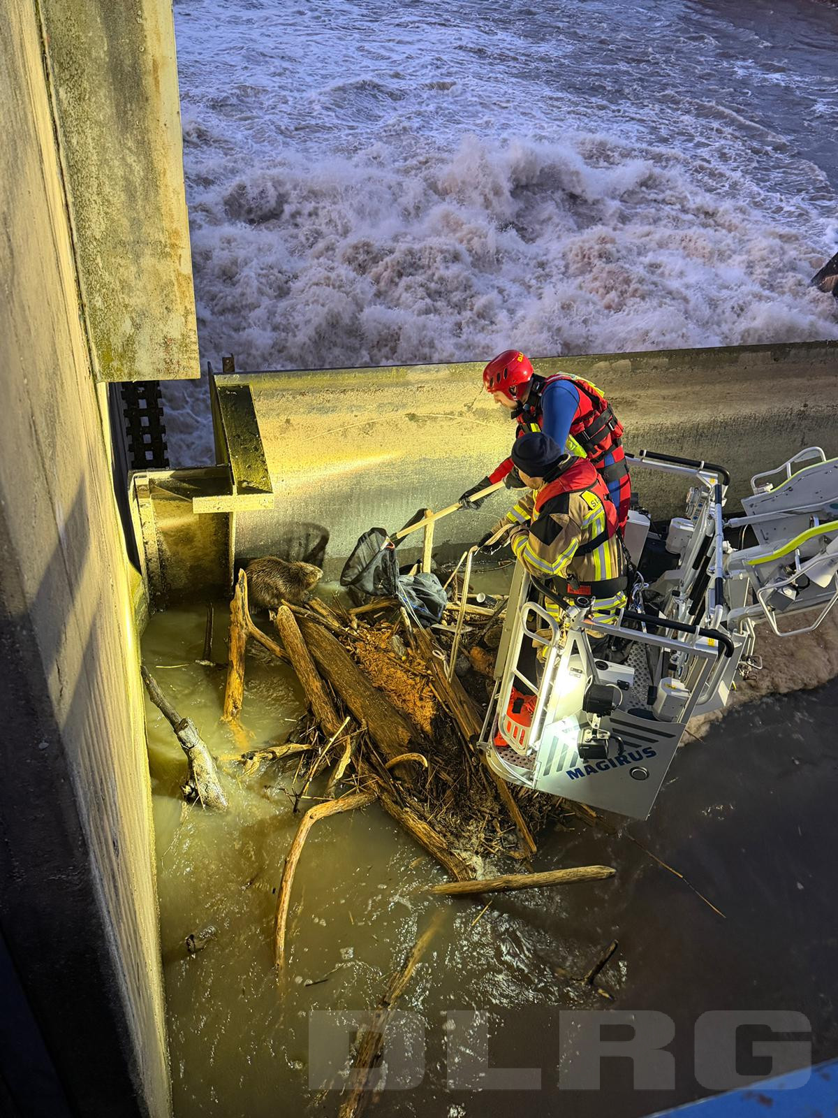 Am Wasserkraftwerk zur Staustufe in Buckenhofen war ein Biber aufgrund der starken Strömung nicht in der Lage den Bereich des Sperrwerks zu verlassen. Aus diesem Grund waren wir gemeinsam mit der Feuerwehr im Einsatz um den Biber zu befreien. Hierzu wurde versucht, mithilfe der Drehleiter den Biber zu erreichen. Der Patient verweigerte jedoch mehrfach die Rettung und da aufgrund der enormen Strömungsverhältnisse ein Zugang übers Wasser oder ein Schließen des Wehres nicht möglich war, wurde der Einsatz bei Einbruch der Dunkelheit abgebrochen