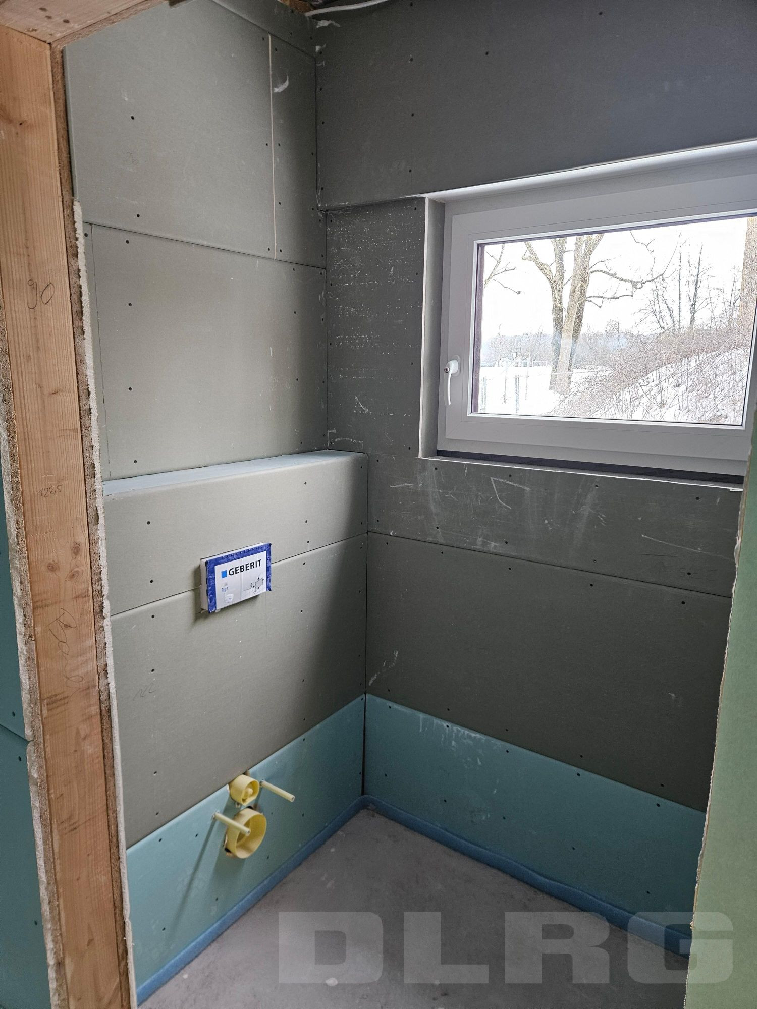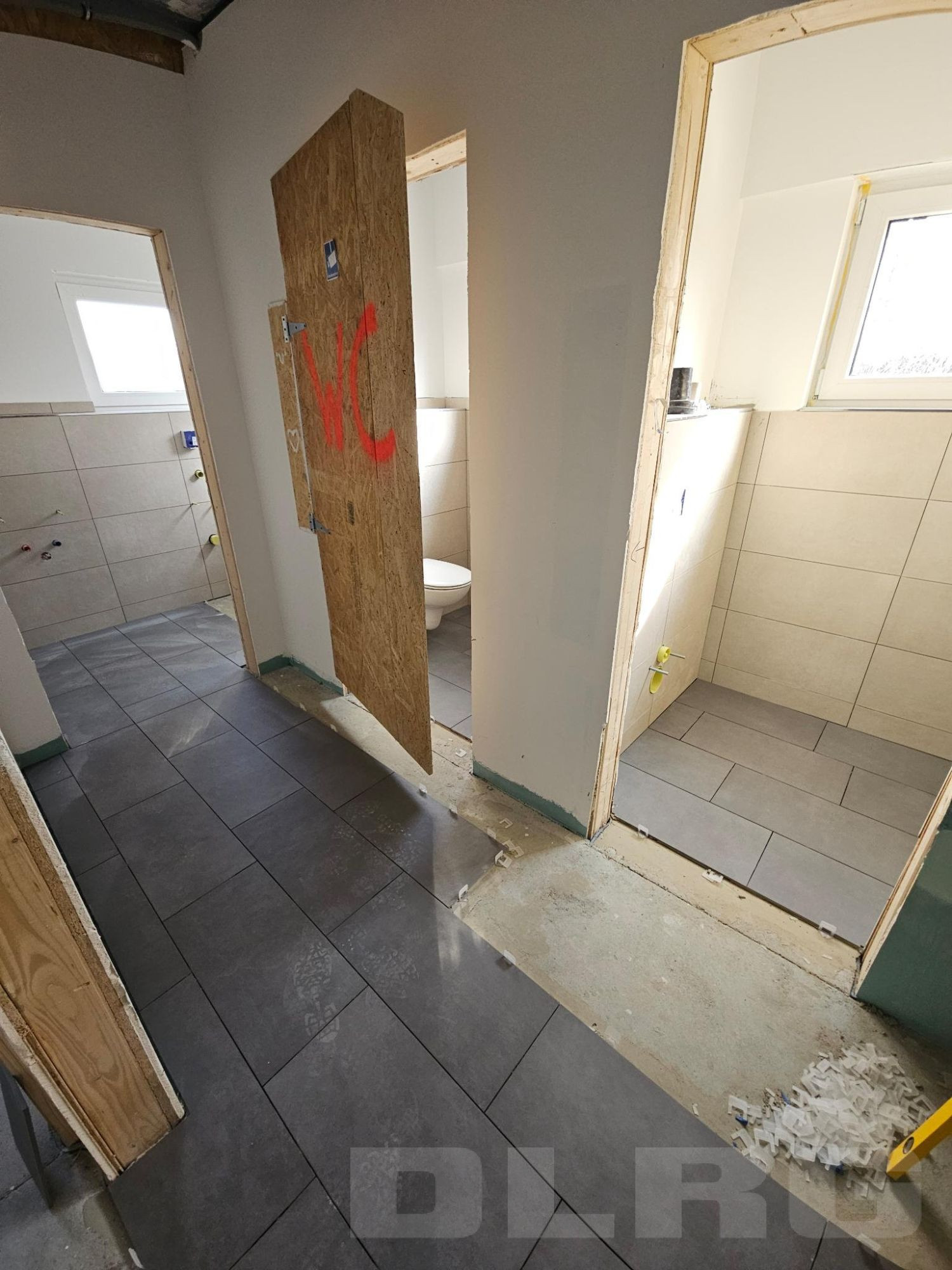 provisorische WC Tür raus - Fliesenleger rein
